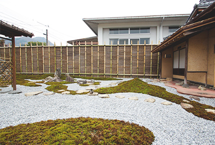 岡山県出身の作庭家「重森三玲」氏が手掛けた歴史的庭園「驢庵(ろあん)露地 東民子庭園」。2025年、再生プロジェクトによる修復が行われ、枯山水の砂紋に石灰石砂利(S-13)が採用されました。